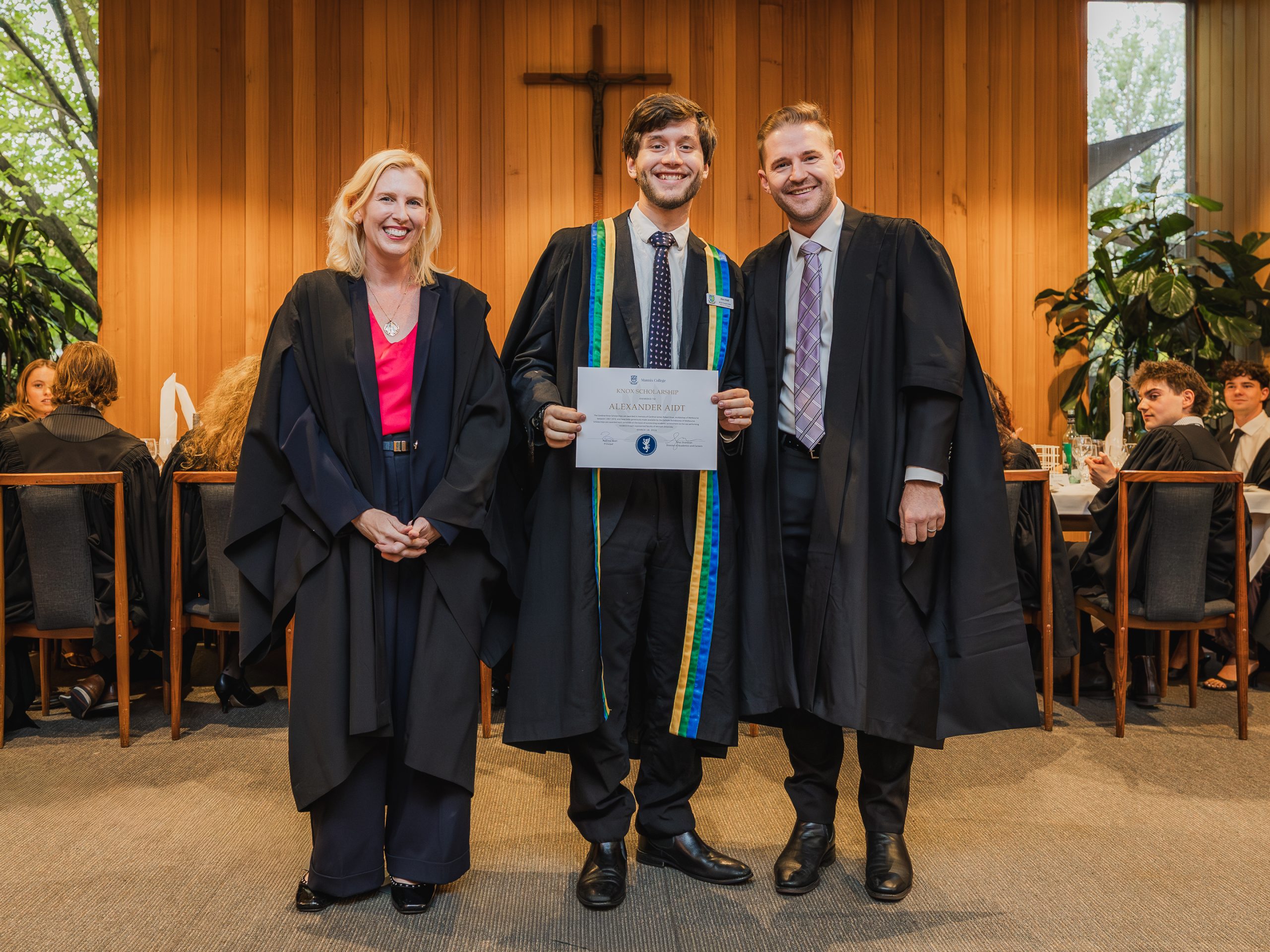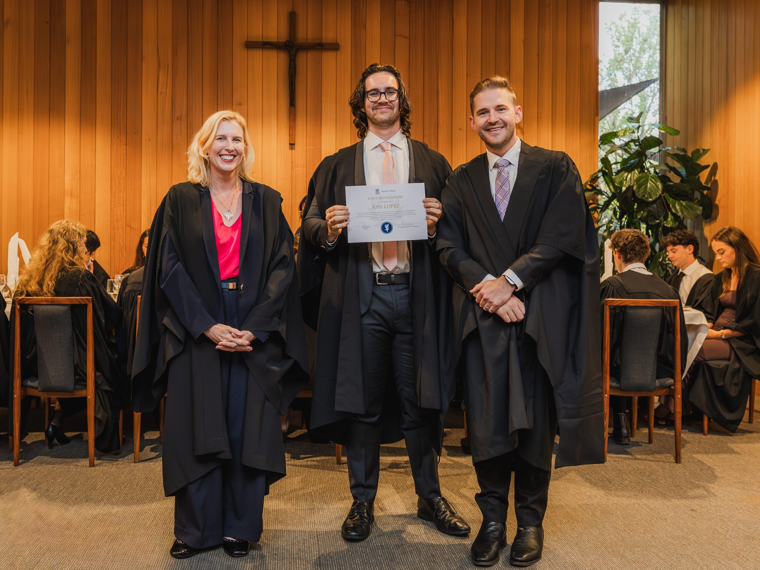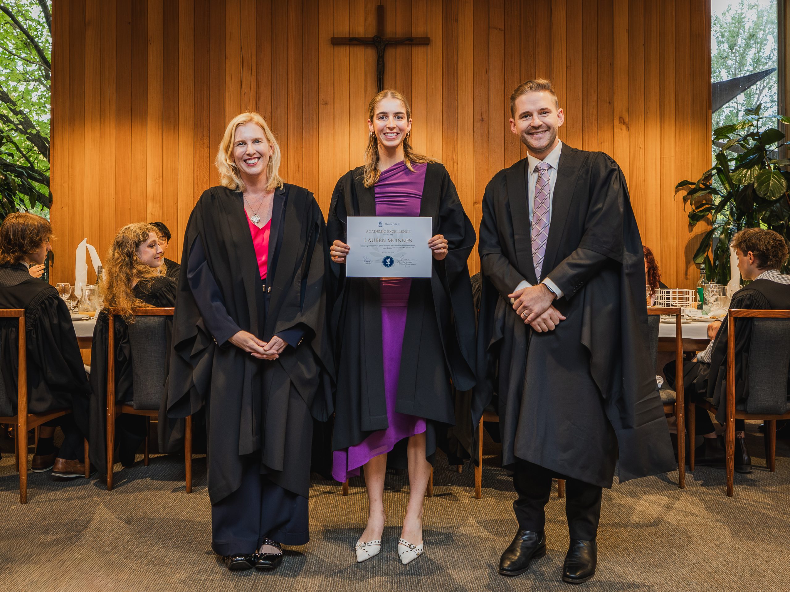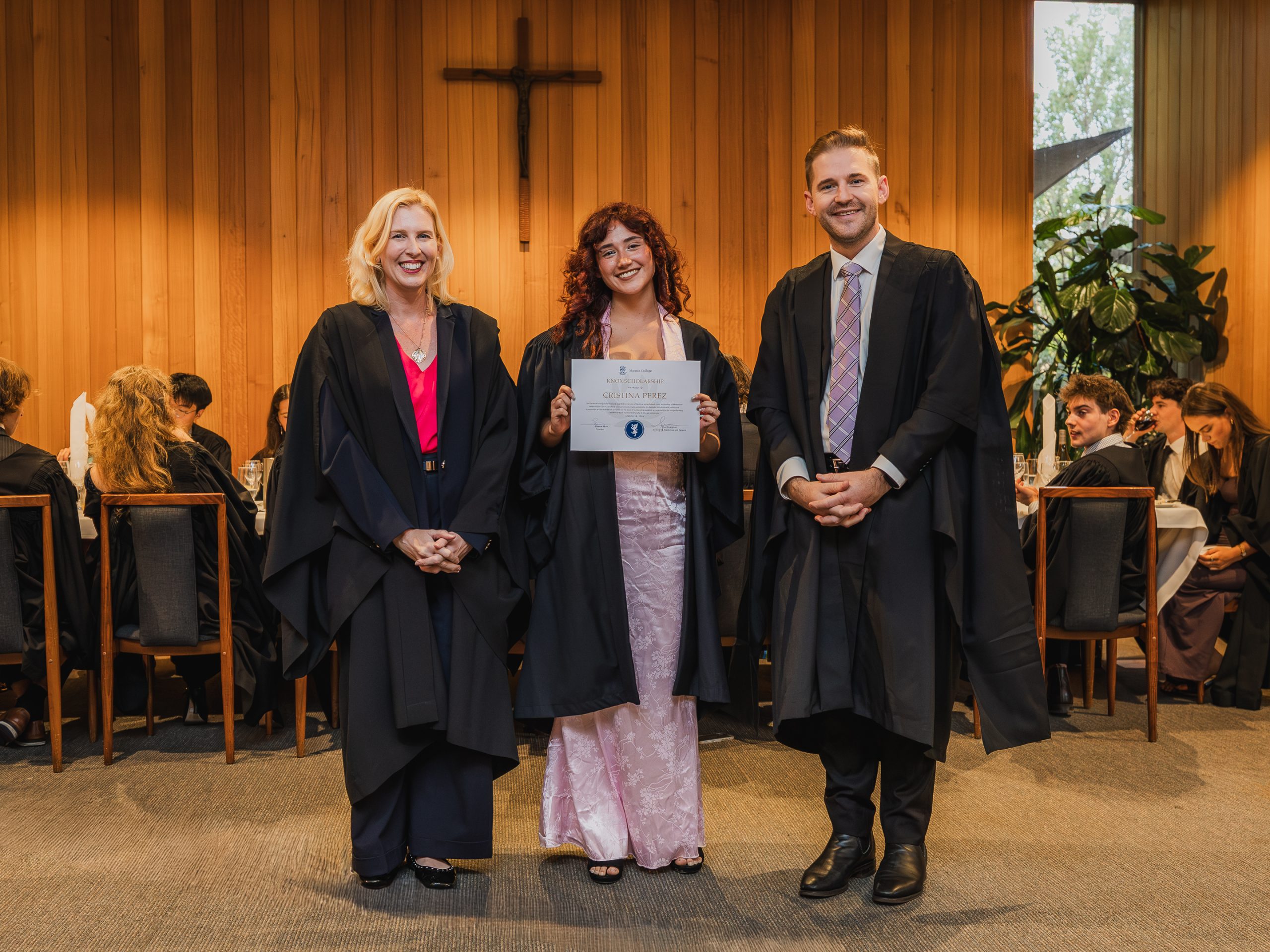 This year, the College recognised 52 students with Academic Awards, alongside 11 recipients of the prestigious Knox Scholarships. Named in honour of Cardinal James Robert Knox, Archbishop of Melbourne from 1967 to 1974, the scholarships commemorate his role in blessing and laying the College’s foundation stone on 23 May 1968. Each scholarship is awarded to the highest-performing resident within their faculty and includes a $1000 prize, generously supported by the Catholic Archdiocese of Melbourne. In addition, students who achieved a High Distinction average in their Semester 2 studies were presented with Academic Excellence Awards. These honours reflect not only individual dedication and discipline but also the supportive academic environment cultivated within the College.