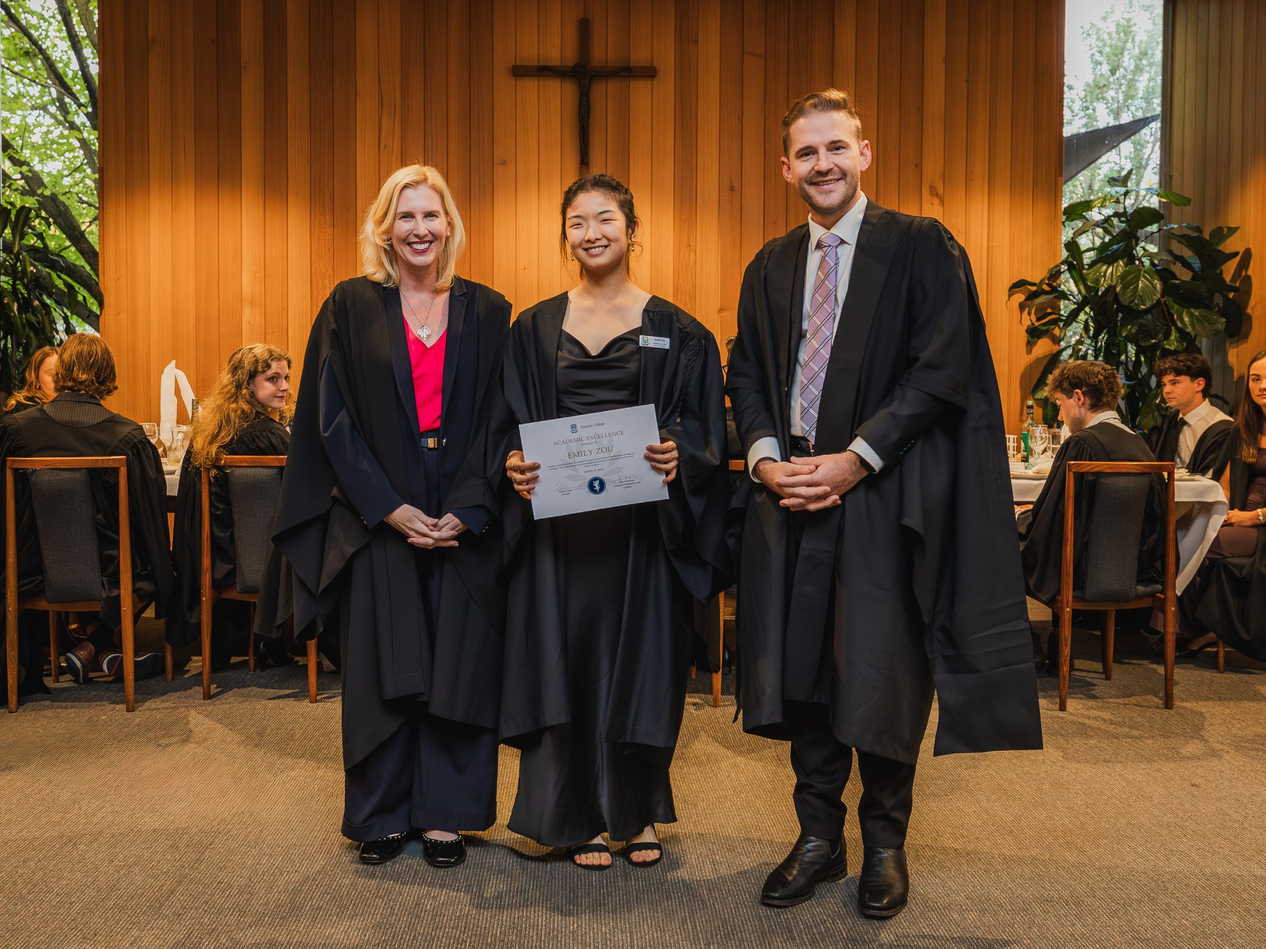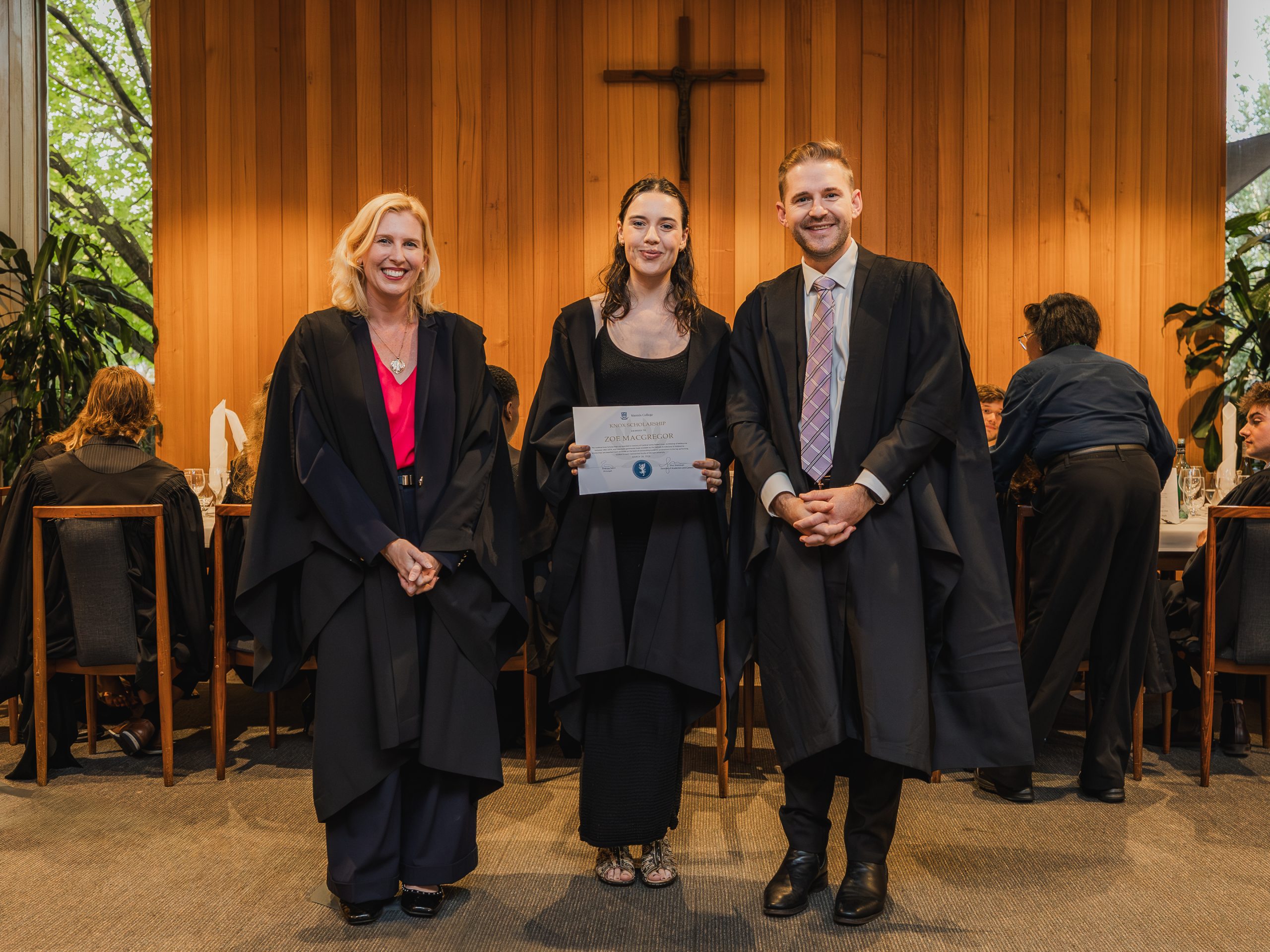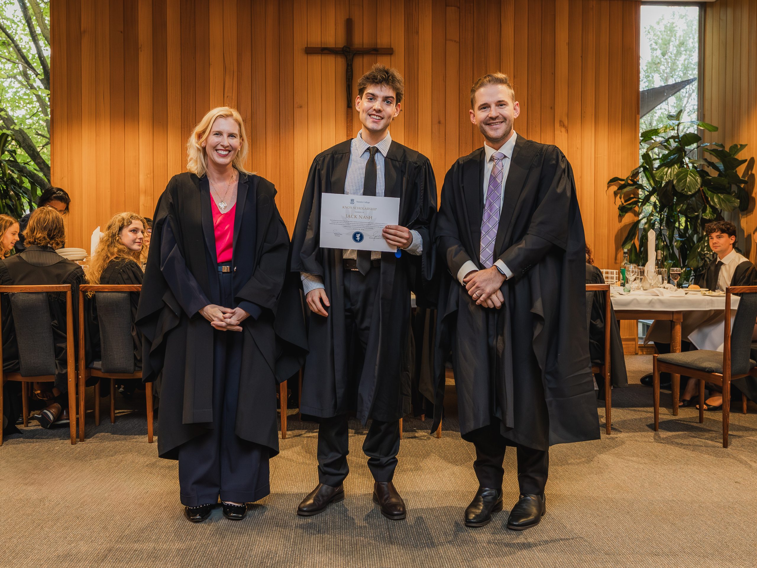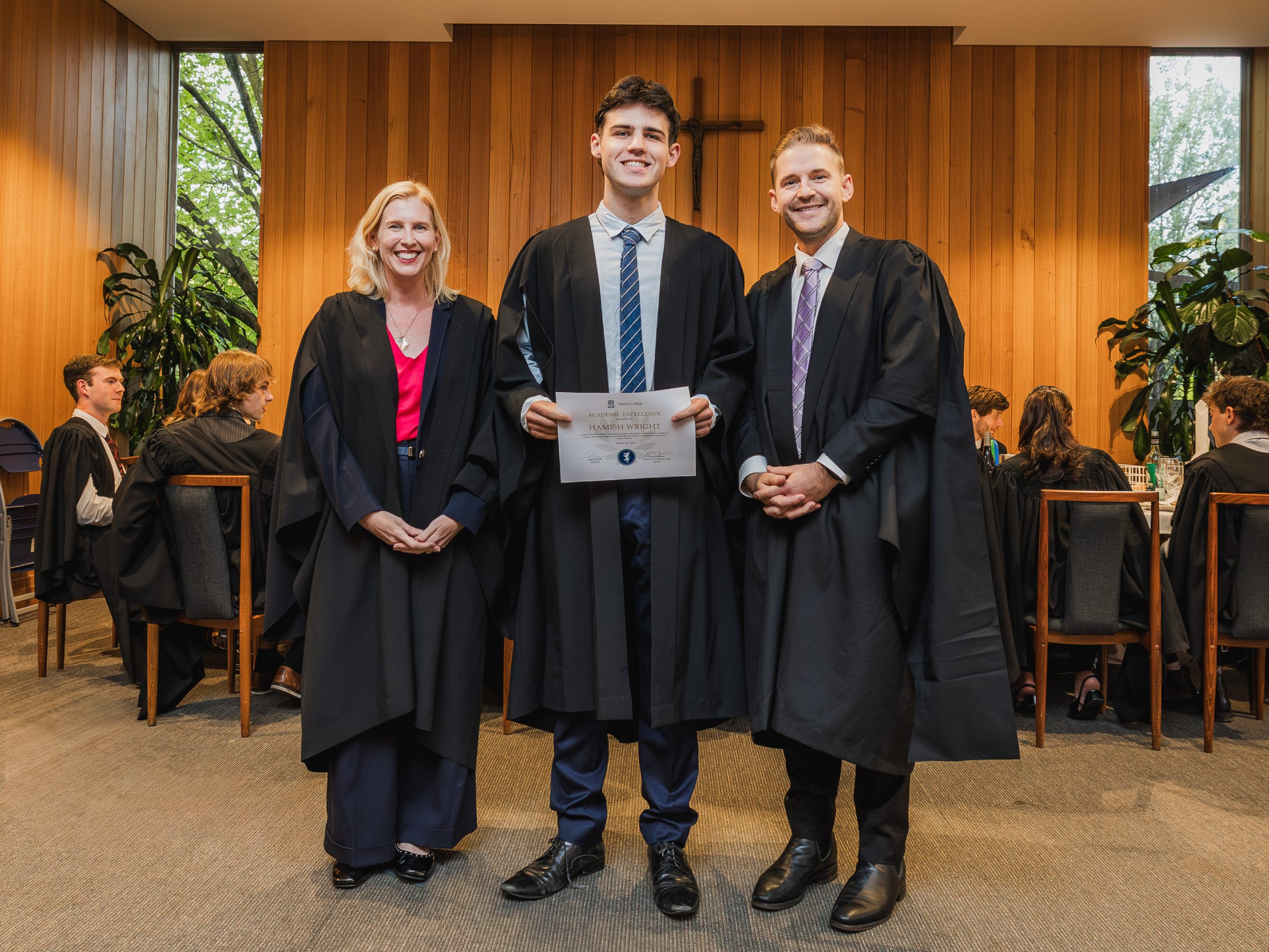 This year, the College recognised 52 students with Academic Awards, alongside 11 recipients of the prestigious Knox Scholarships. Named in honour of Cardinal James Robert Knox, Archbishop of Melbourne from 1967 to 1974, the scholarships commemorate his role in blessing and laying the College’s foundation stone on 23 May 1968. Each scholarship is awarded to the highest-performing resident within their faculty and includes a $1000 prize, generously supported by the Catholic Archdiocese of Melbourne. In addition, students who achieved a High Distinction average in their Semester 2 studies were presented with Academic Excellence Awards. These honours reflect not only individual dedication and discipline but also the supportive academic environment cultivated within the College.