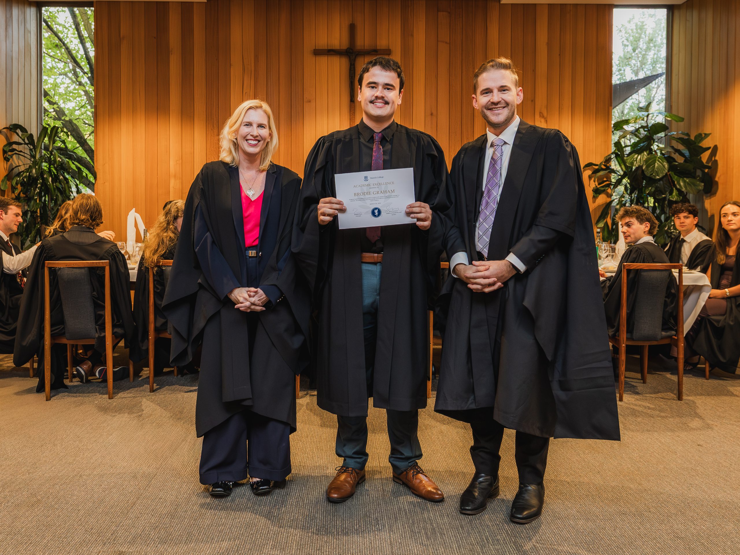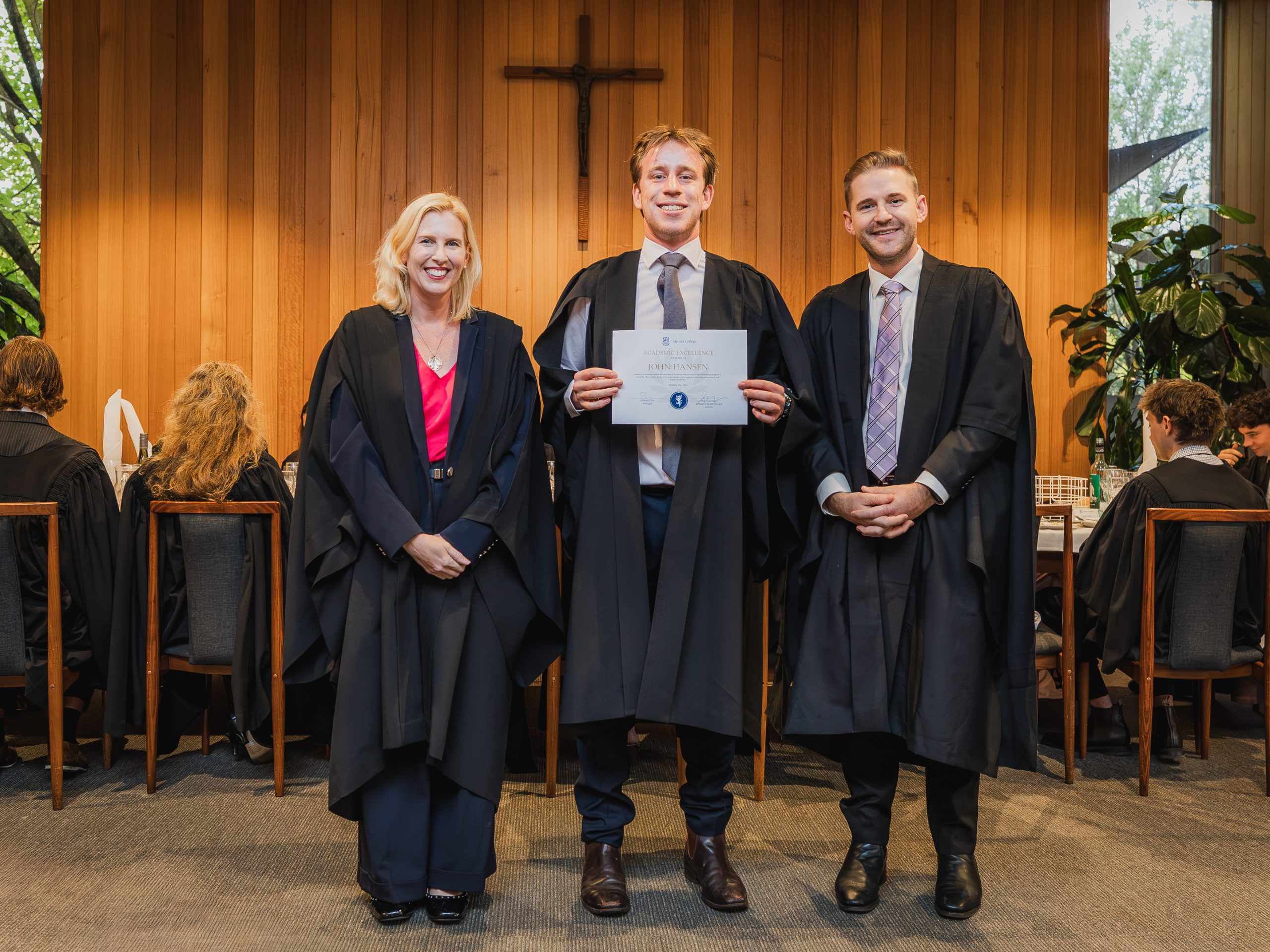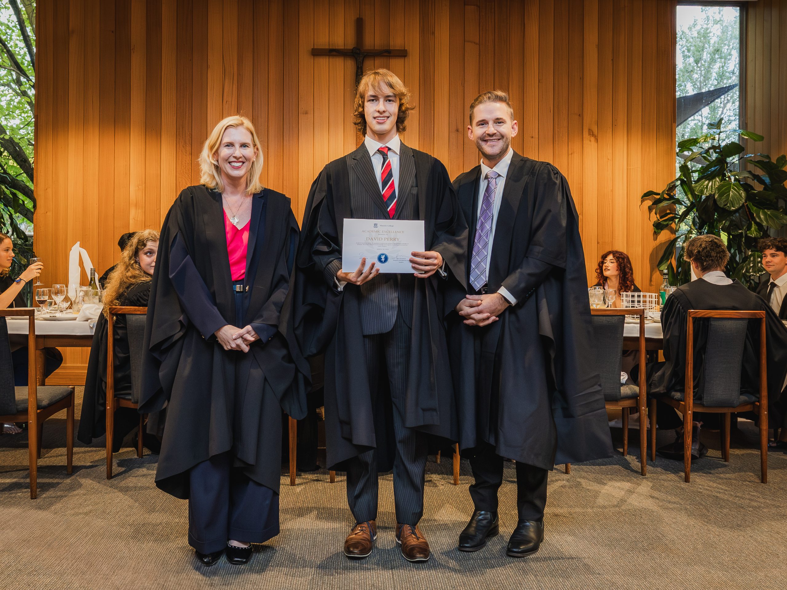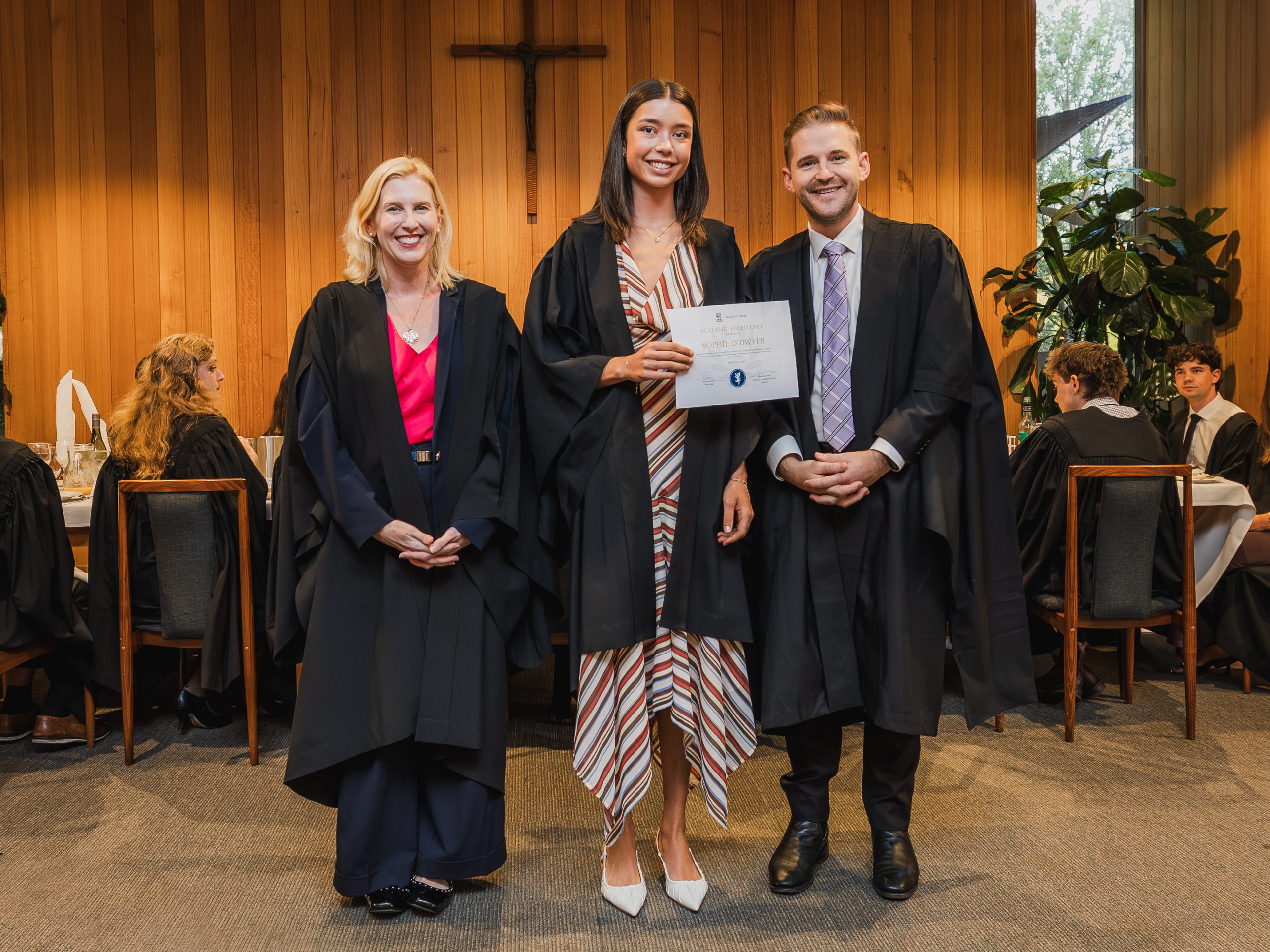 This year, the College recognised 52 students with Academic Awards, alongside 11 recipients of the prestigious Knox Scholarships. Named in honour of Cardinal James Robert Knox, Archbishop of Melbourne from 1967 to 1974, the scholarships commemorate his role in blessing and laying the College’s foundation stone on 23 May 1968. Each scholarship is awarded to the highest-performing resident within their faculty and includes a $1000 prize, generously supported by the Catholic Archdiocese of Melbourne. In addition, students who achieved a High Distinction average in their Semester 2 studies were presented with Academic Excellence Awards. These honours reflect not only individual dedication and discipline but also the supportive academic environment cultivated within the College.