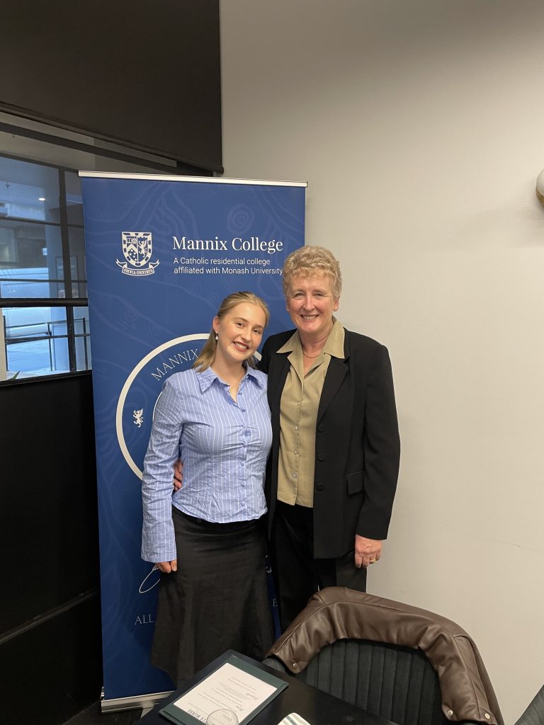 Among the guests were Heather (Tweddle) Coughlin, the College’s first female MCSS President (1979), and Polly Lewis, the current MCSS President (2025) — two women, 46 years apart, united by their shared experience of leading the Mannix community. Their meeting captured the essence of the event: celebrating continuity, courage, and connection across generations.